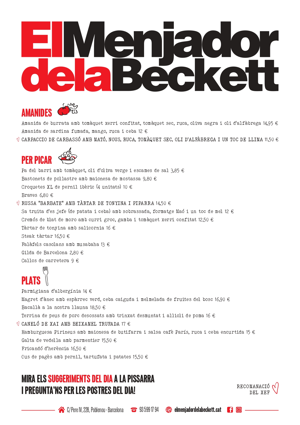 la carta del menjador i els nostres plats del dia