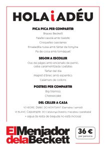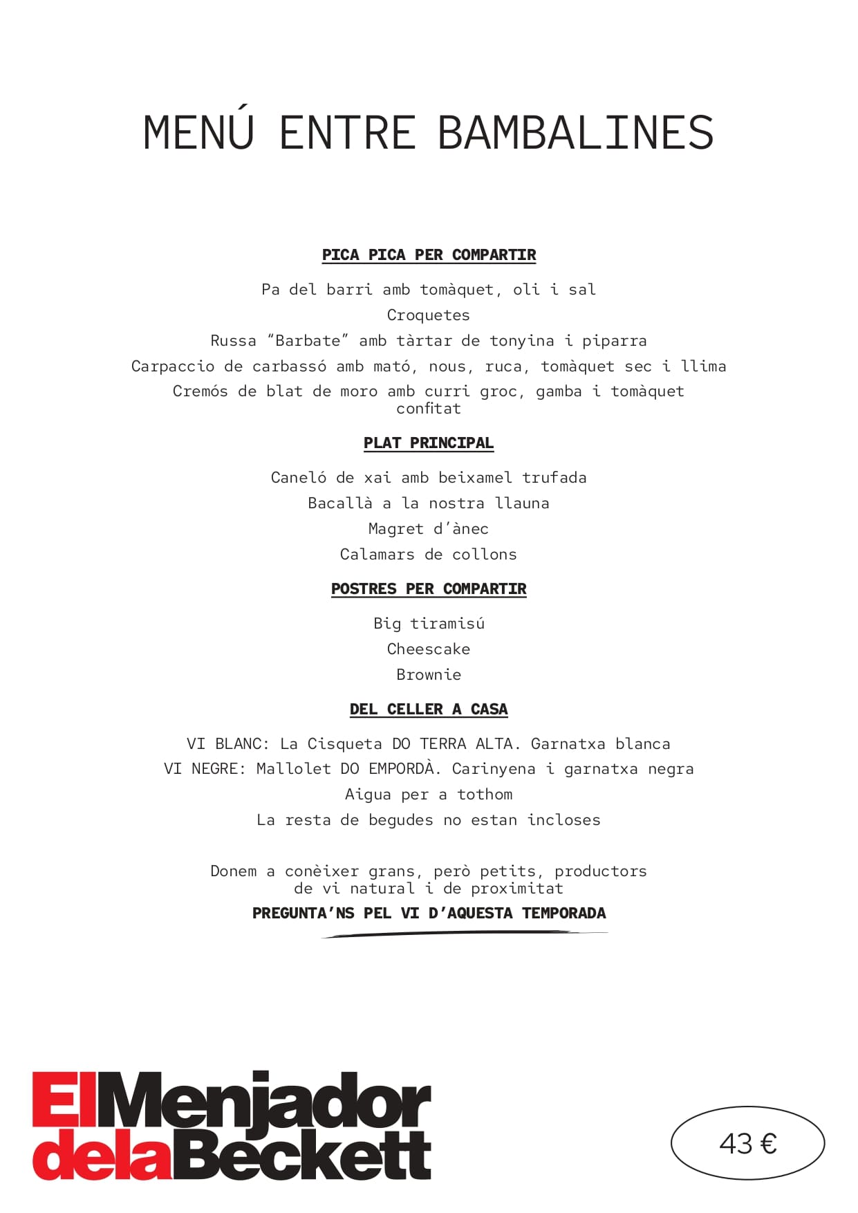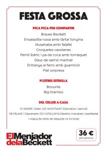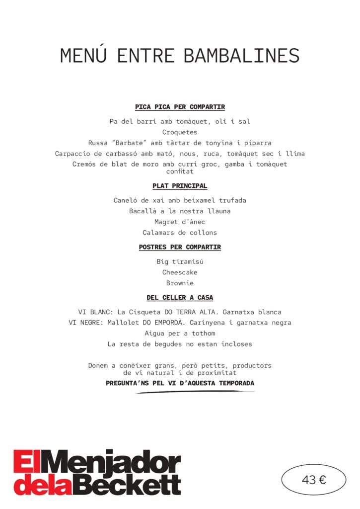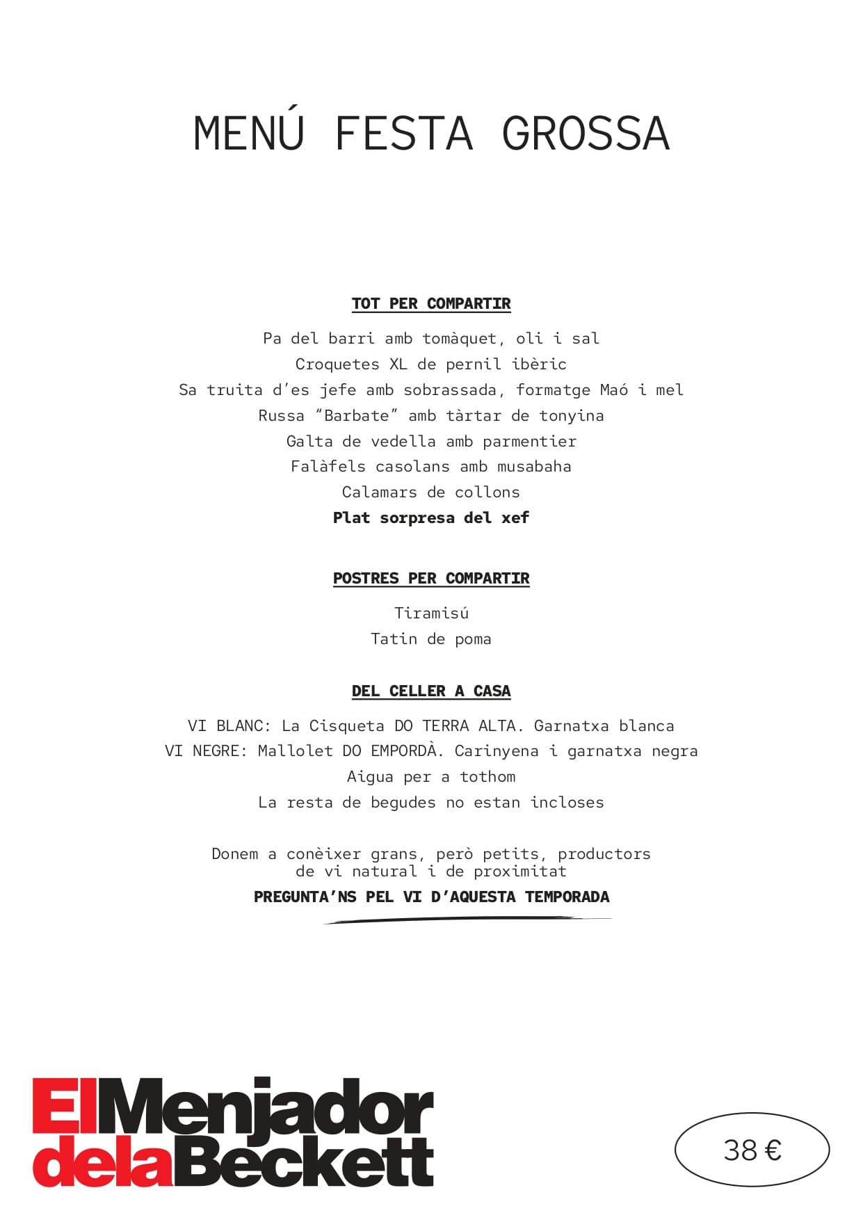 Tens una celebració, un dinar en grup o simplement un pla amb els amics i no sabeu on anar? A El Menjador de la Beckett tenim la solució! Si sou més de 17 persones, preparem un menú especial perquè gaudiu d’una experiència inoblidable amb els vostres. No cal que penseu en què menjar, nosaltres ens ocupem de tot perquè només us concentreu a passar-ho bé.